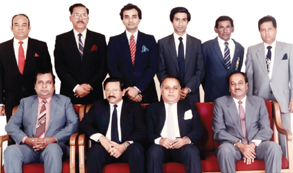 Sitting L to R-Mr. Syed Raihan Hasan Ali, Director; Mr. Tareq Rahman, Director Administration; Capt. Saifur Rahman, President; Mr. Rafiqul Alam (Helal), Director Finance; Mrs. Tahmina Rehman, Director